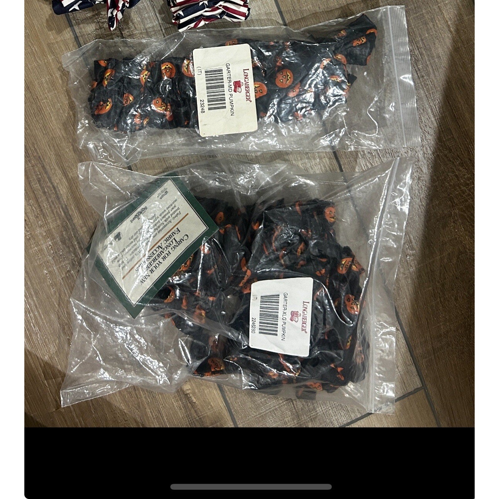5 Longaberger Basket Fabric Garters Halloween Boo XL & Medium pumpkin
