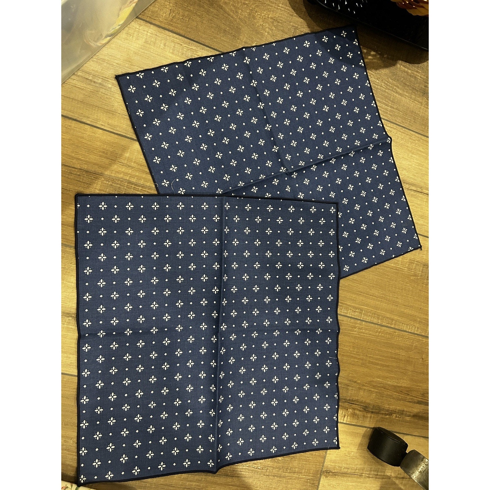 Longaberger Basket Napkins Classic Blue fabric squares Set of 2 ~
