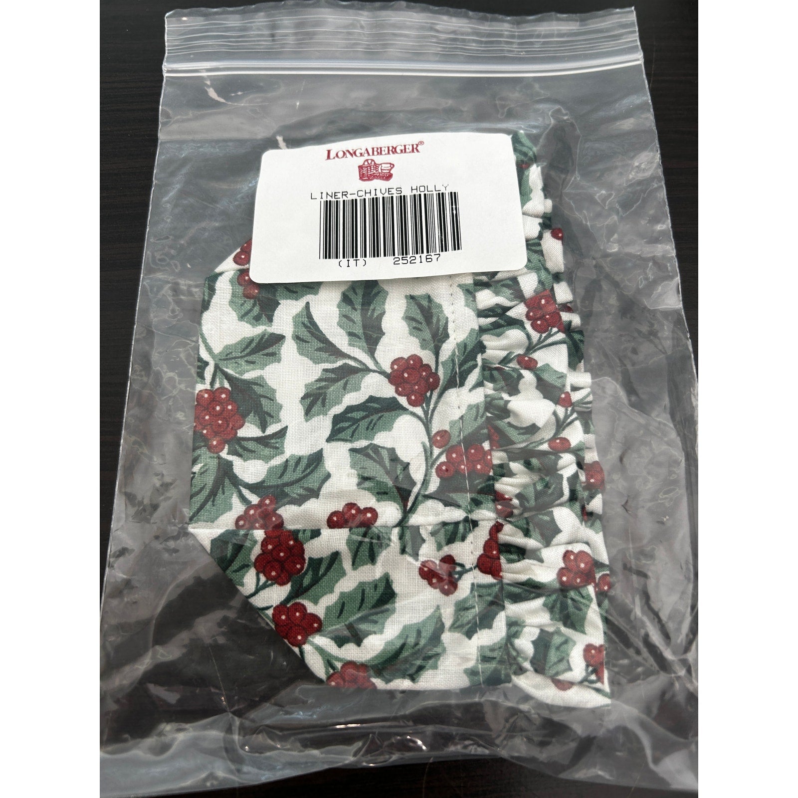Longaberger CHIVES BASKET LINER Traditional Holly Fabric NEW booking liner Holiday