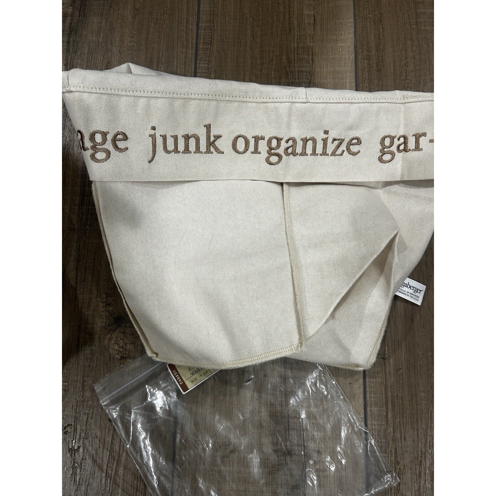 Embroidered around the top "garbage trash recycle organize"