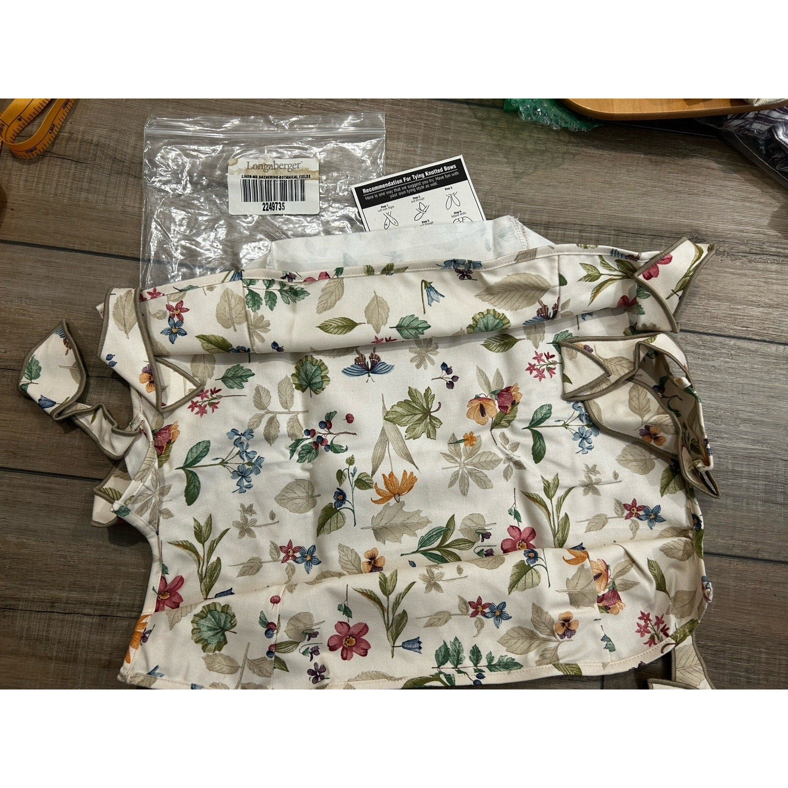 Longaberger Medium Gathering Basket Liner Botanical Fields NEW Rare USA Bow Ties