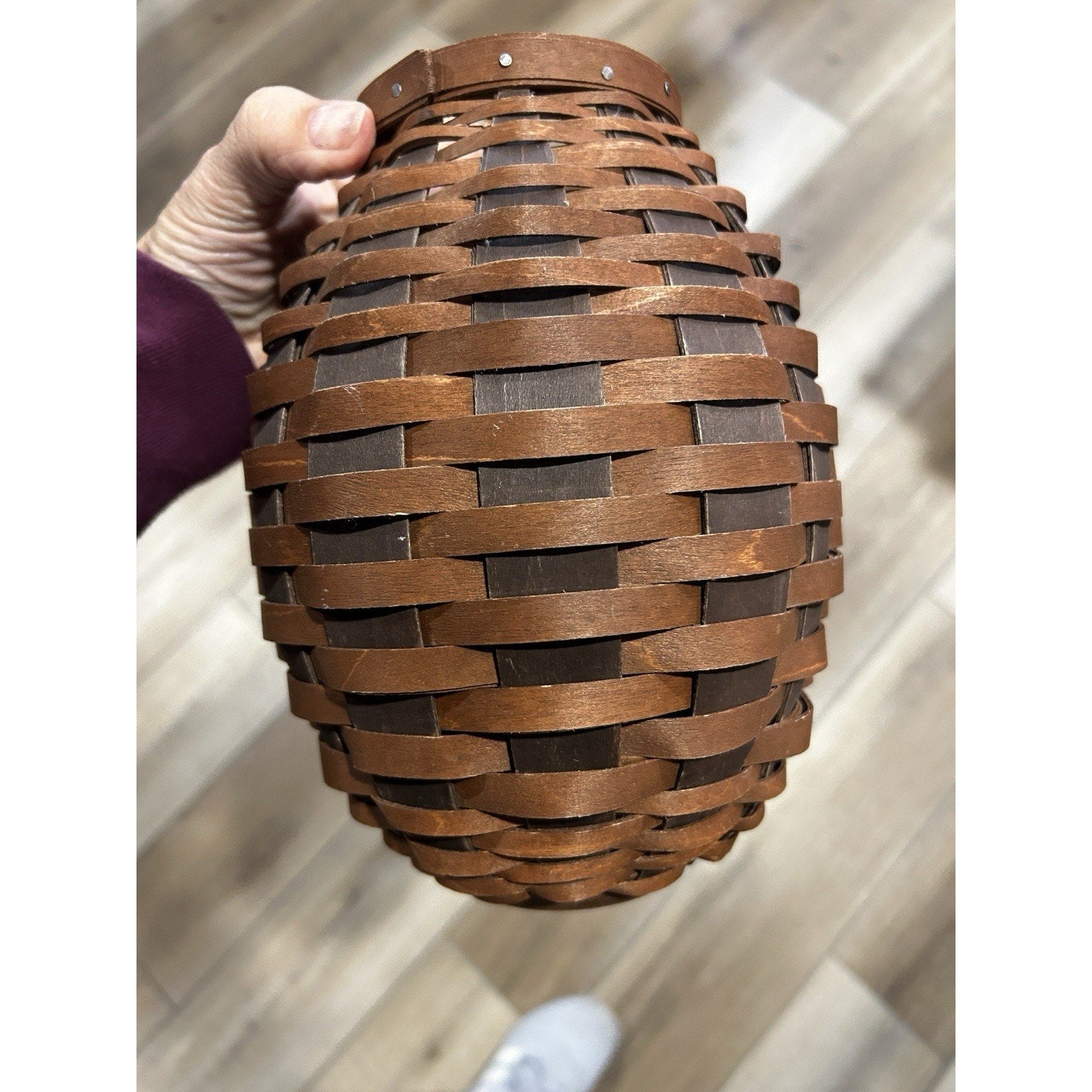 The 2011 Longaberger Pineapple Basket Collectors Club Metal Leaf lid is a medium-sized woven basket made by the renowned brand Longaberger in the United States. This original handcrafted piece features a brown color and is perfect for all occasions. The metal leaf lid adds a unique touch to this decorative collectible, making it a prized item for collectors of baskets and Longaberger products alike.