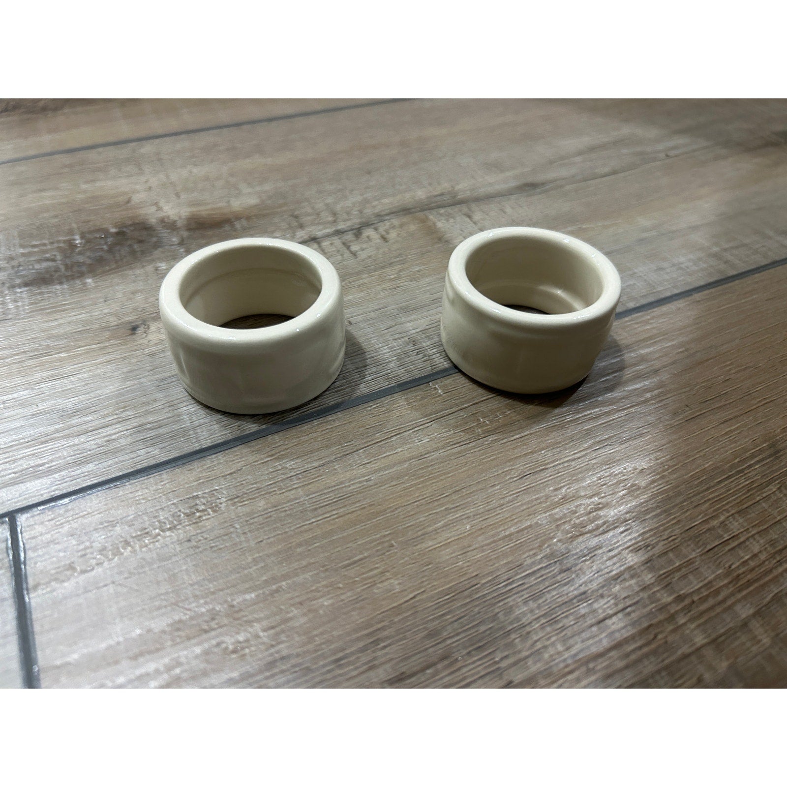 Longaberger USA Pottery Napkin Rings set of 2 IVORY WHITE Christmas