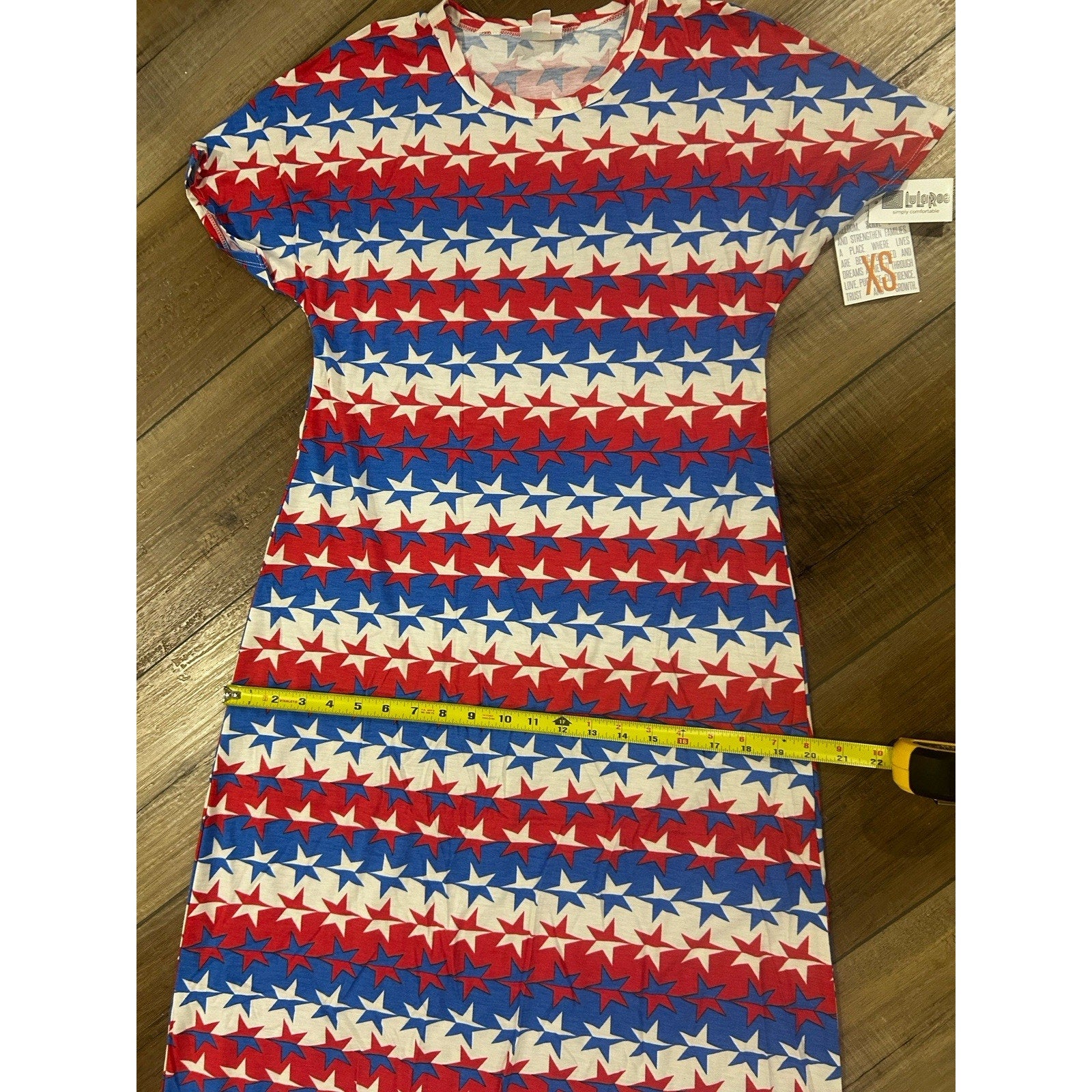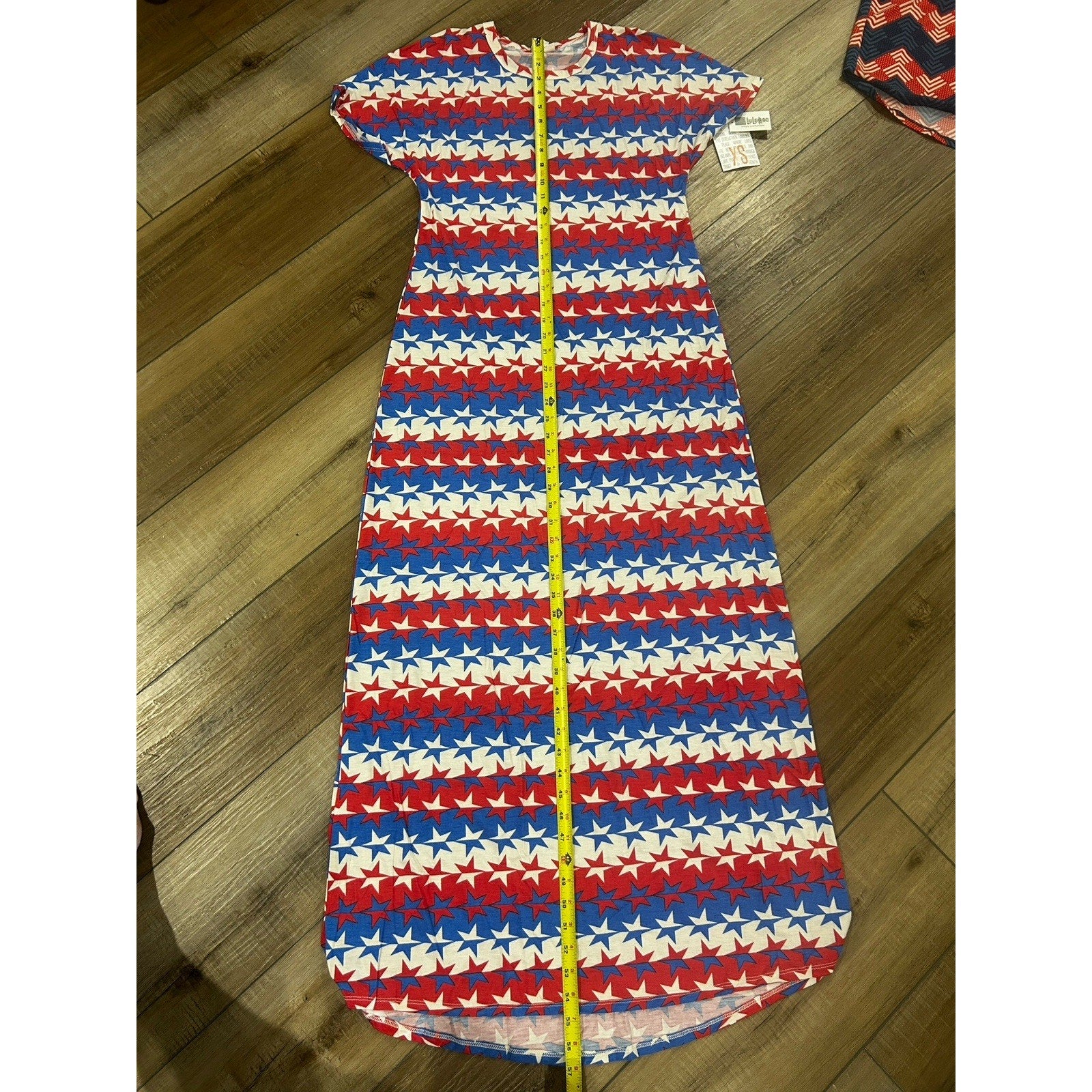 LuLaRoe Maria Dress XS Maxi Red White Blue Stars NEW Patriotic Starsky & Hutch